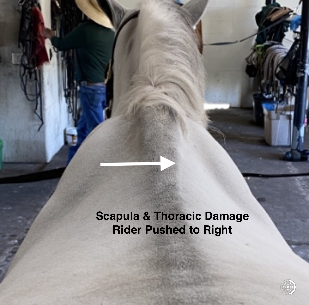 If you want to better understand the absolutely stupid things I do to figure out these problems, this video is an example along with hundreds of other horses I have jumped on bareback to “feel” this dysfunctional pattern. This was my cutting horse Isaiah (he has since passed). I bought him when he was 8 years old. He was extremely quirky, untrusting of humans, painful and had the two white saddle marks when I purchased him due to chronic ill-fitted saddles, plus he was very downhill and caused difficulty for me videotaping as I slide forward with every stride. The video was recorded years ago via GoPro held in my hand AND relating the stupid portion of this decision becomes evident as it was the second time that he was ever ridden bareback. The first time ridden bareback was the day before after cutting practice where he was tired though very “jiggie” when I got on. I did this to better understand on many horses to feel normal scapular movement and with Isaiah, scapular dysfunctional movement caused by years of poor saddle fit, thus the white marks. I would not advise riding any cutting horse bareback, especially quirky ones, however I am not known to have good judgement when it comes to self preservation when a problem needs to be solved, whether I am a journeyman lineman, athlete, or veterinarian.